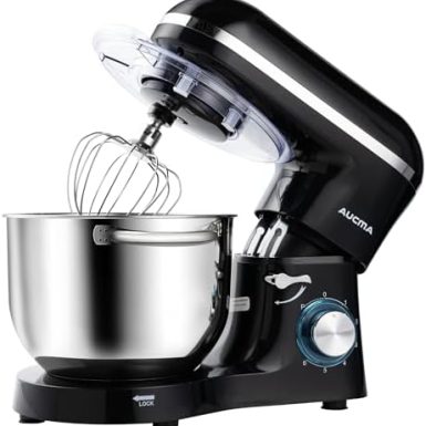 Aucma Stand Mixer,6.5-QT 660W 6-Speed Tilt-Head Food Mixer, Kitchen Electric Mixer with Dough Hook, Wire Whip & Beater (6.5QT, Black)